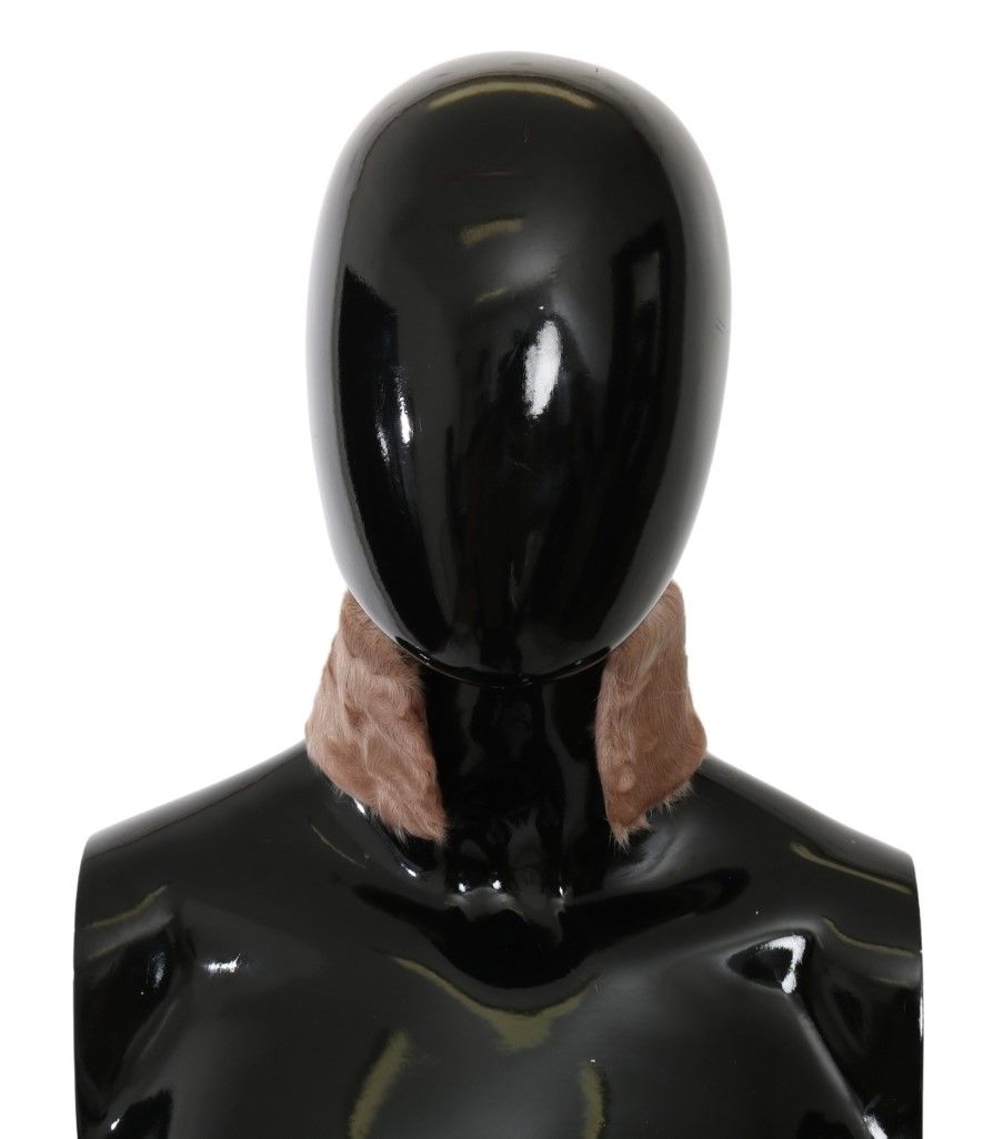 وشاح من جلد الحملان بياقة من الفرو البيج من دولتشي آند غابانا