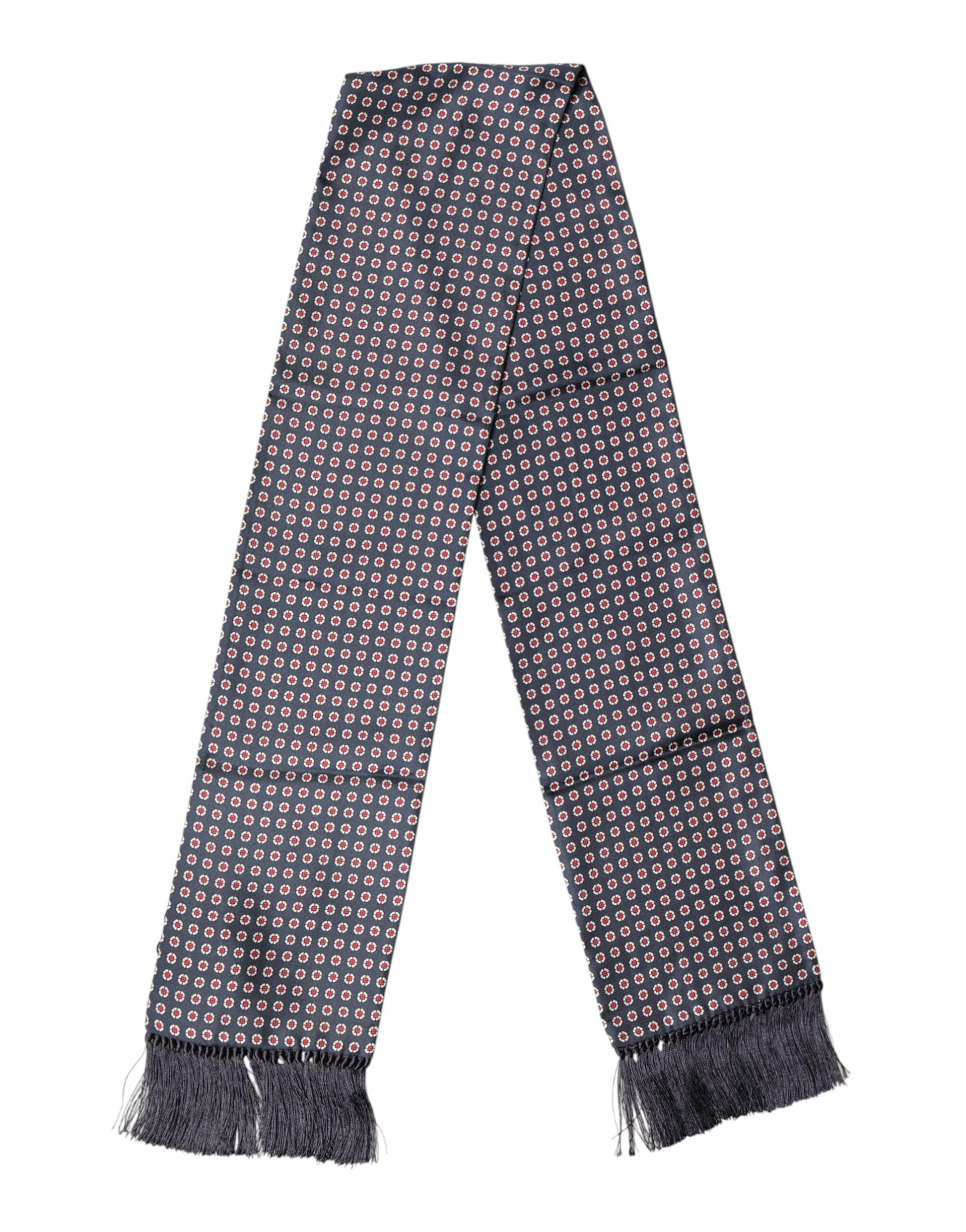 Dolce & Gabbana Black Patterned Fringes Neck Foulard Scarf