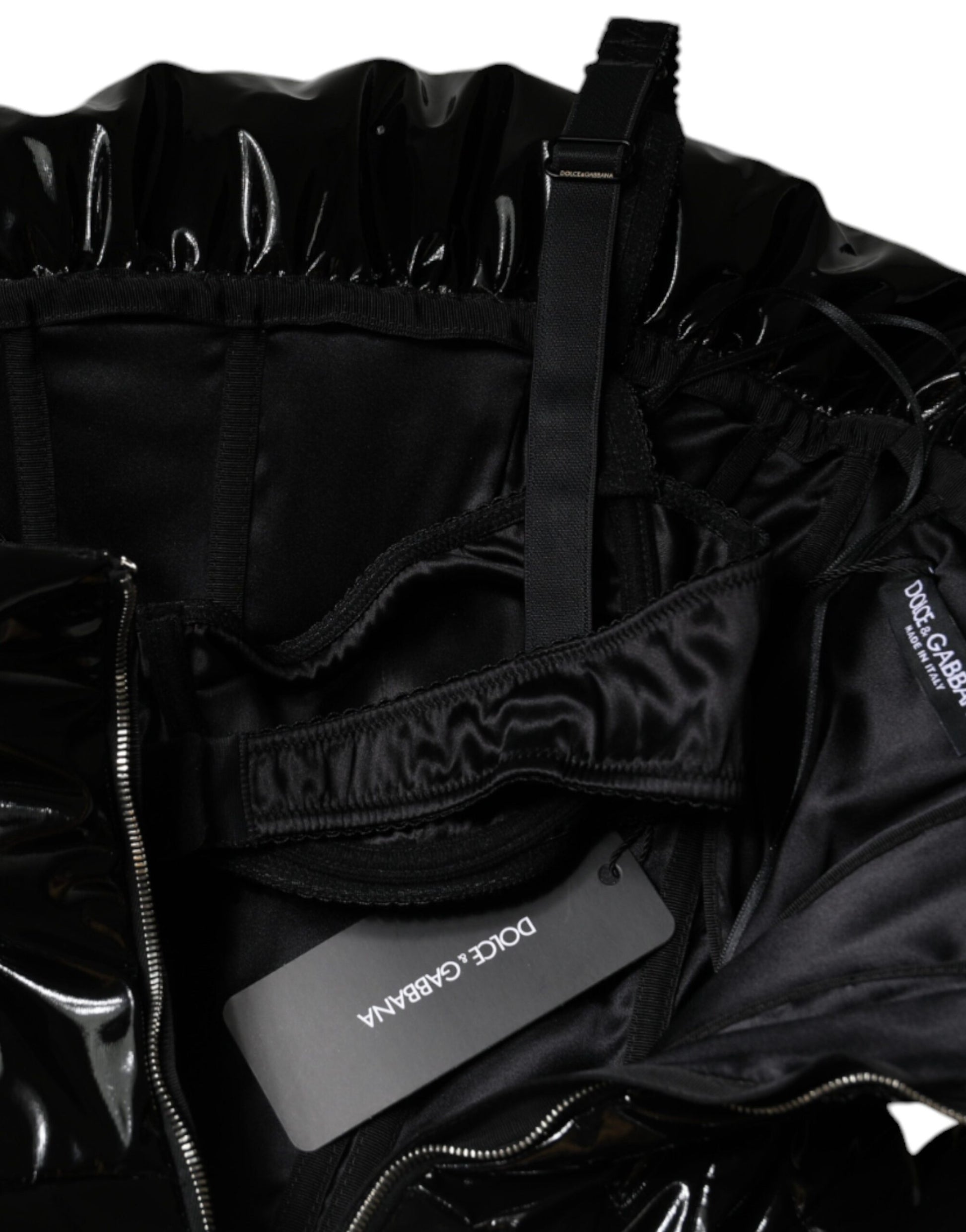 فستان دولتشي آند غابانا قصير أسود من البوليستر المغطى بكشكشة