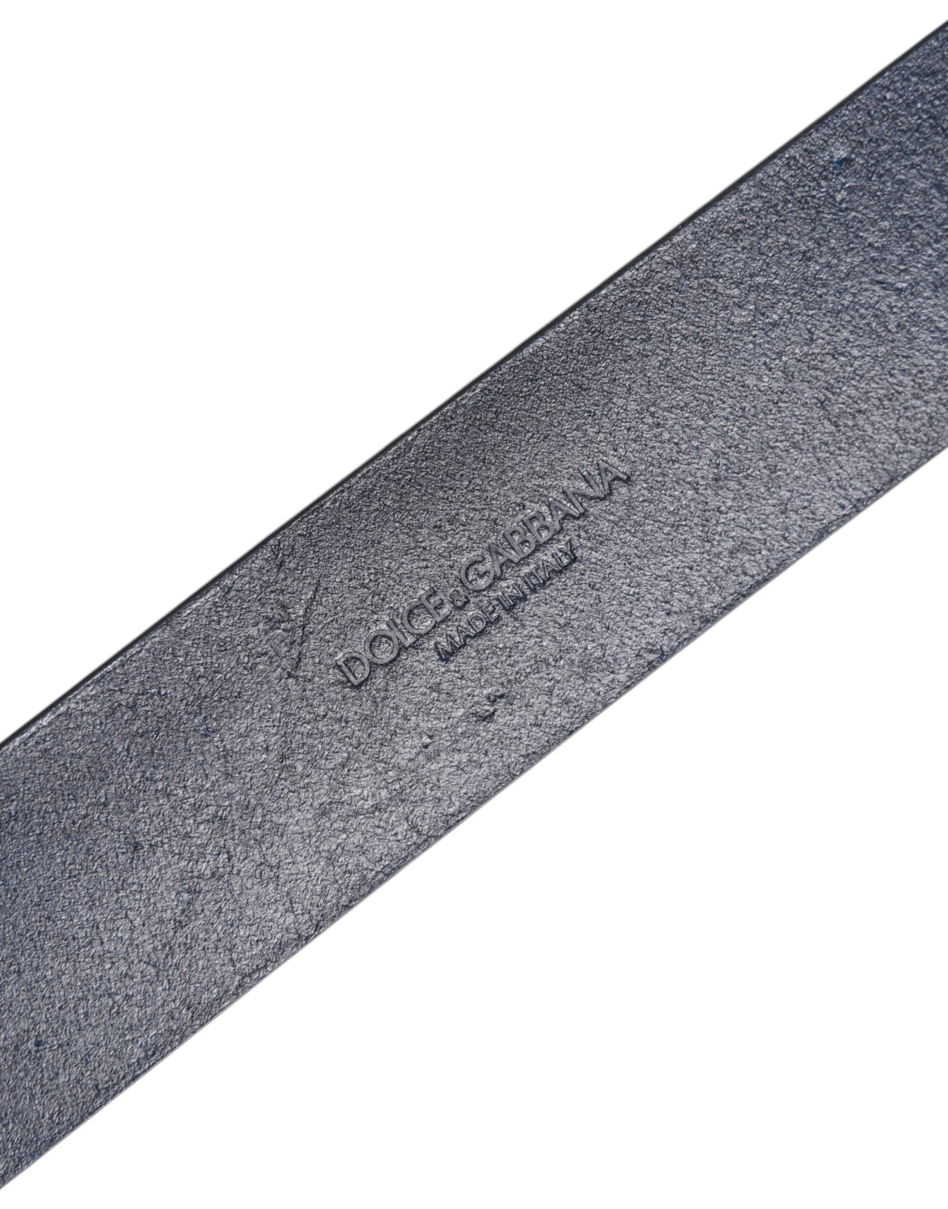 حزام دولتشي آند غابانا الكلاسيكي المصنوع من الجلد الأزرق ومشبك الشعار المعدني