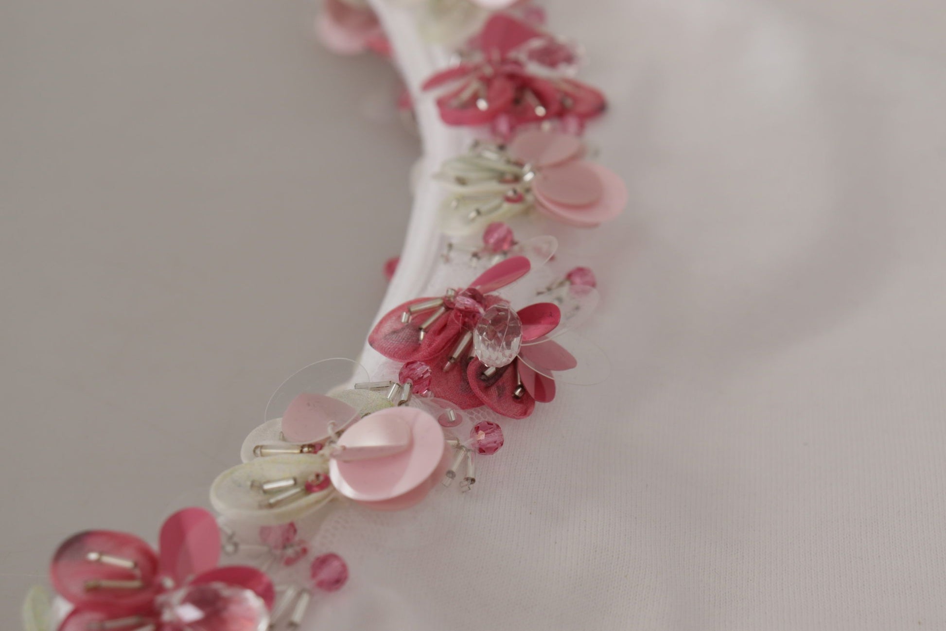 تي شيرت دولتشي آند غابانا أبيض DG Crown مزين بالترتر والزهور