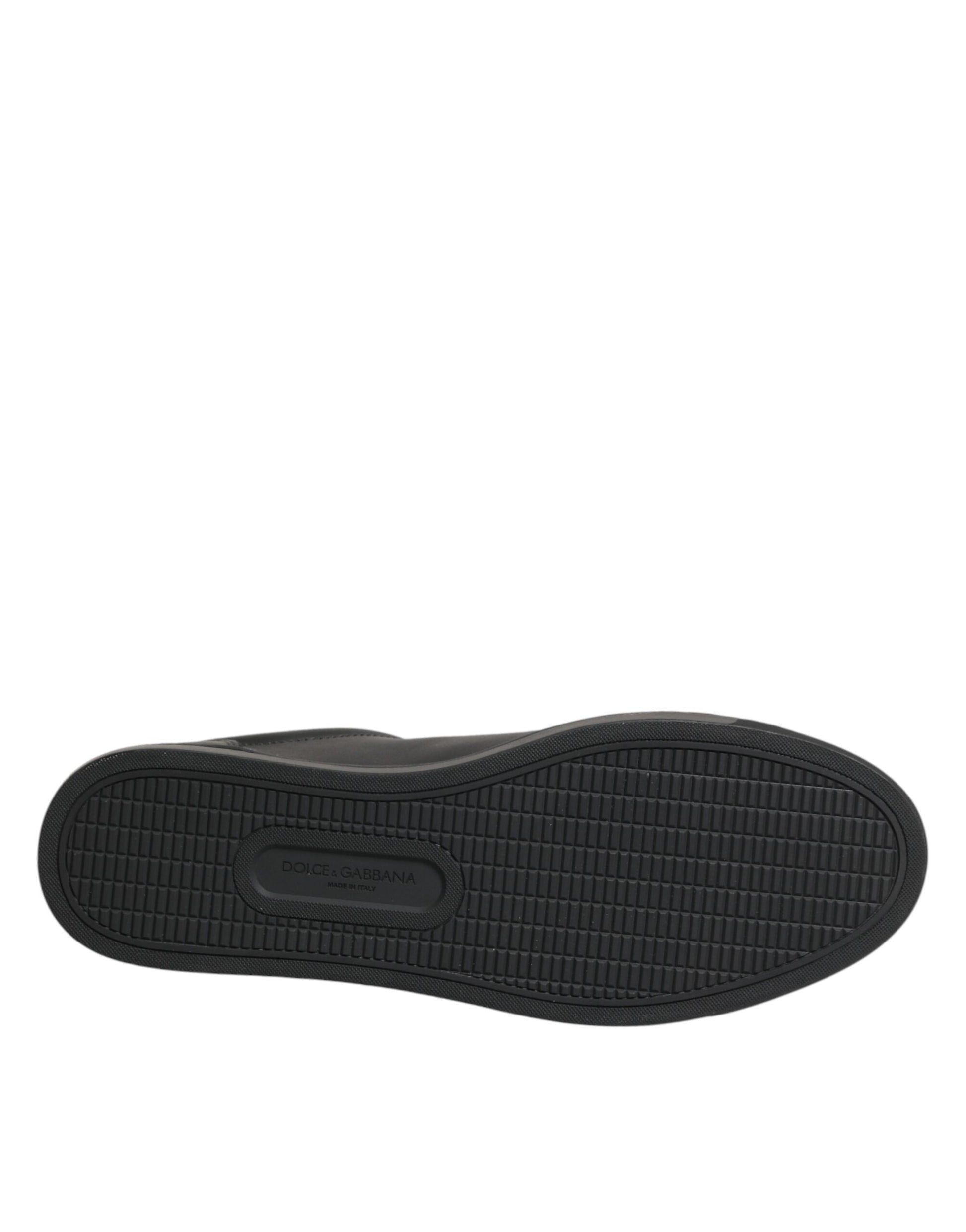 Dolce & Gabbana Black Leather Heart Embellished Sneakers Shoes
