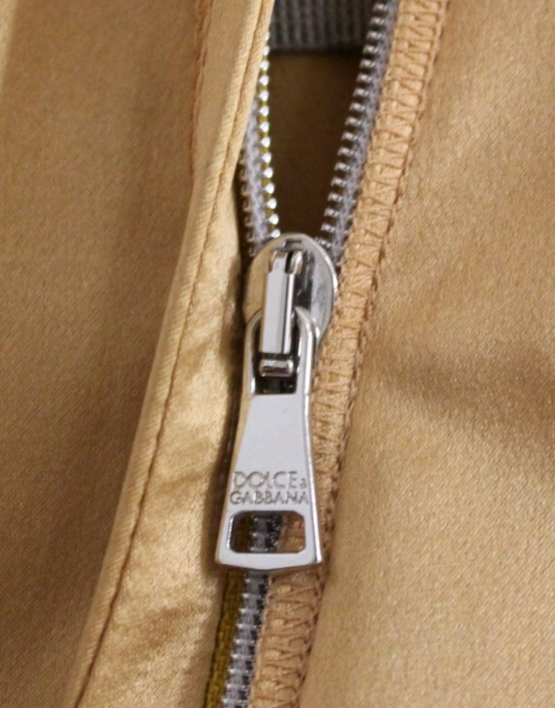 Gorgeous brand new with tags, 100% Authentic Dolce & Gabbana Bronze Silk dress. This item comes from the MainLine Dolce & Gabbana collection.