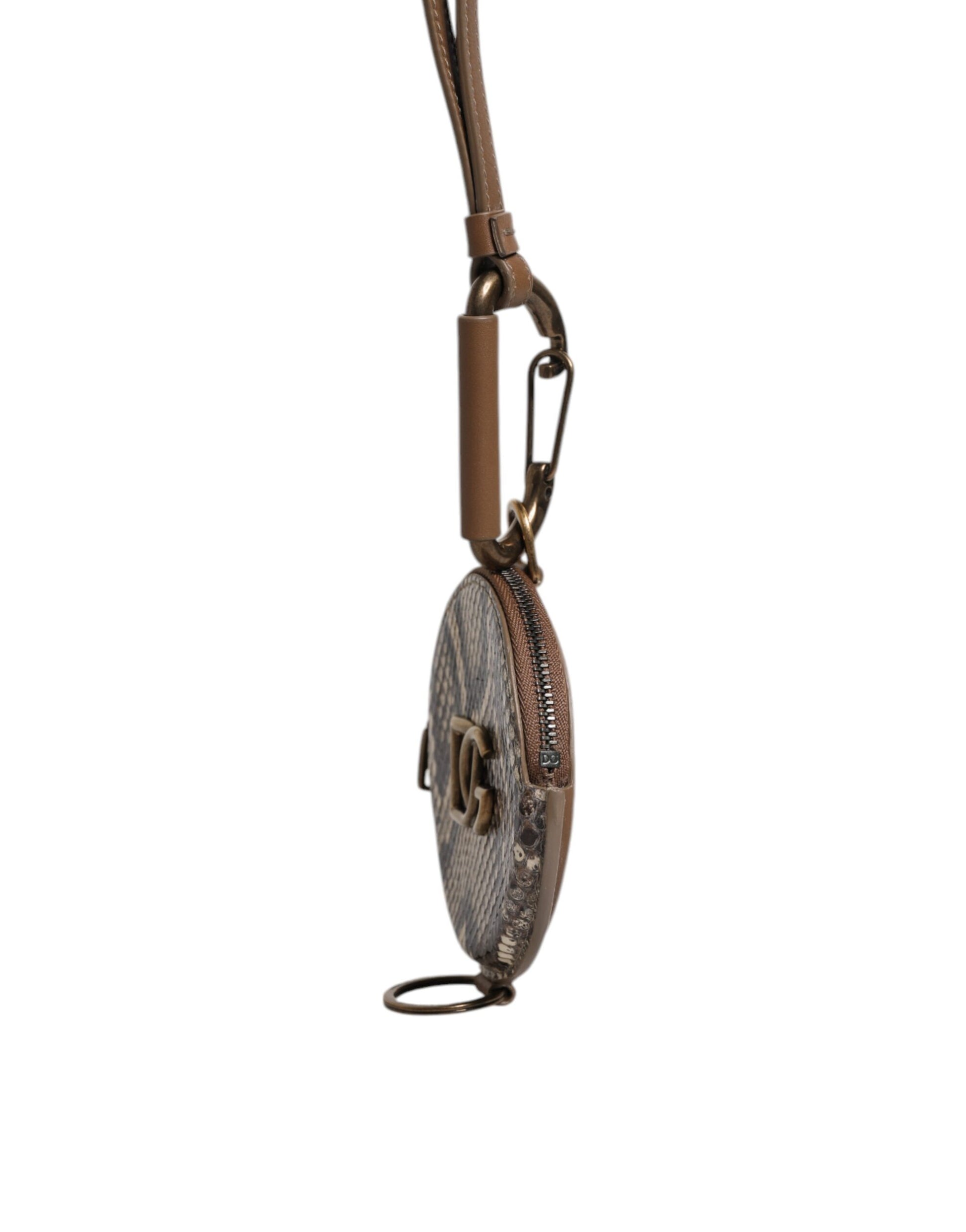 Dolce & Gabbana Brown Round Leather DG Logo Coin Purse Lanyard Wallet