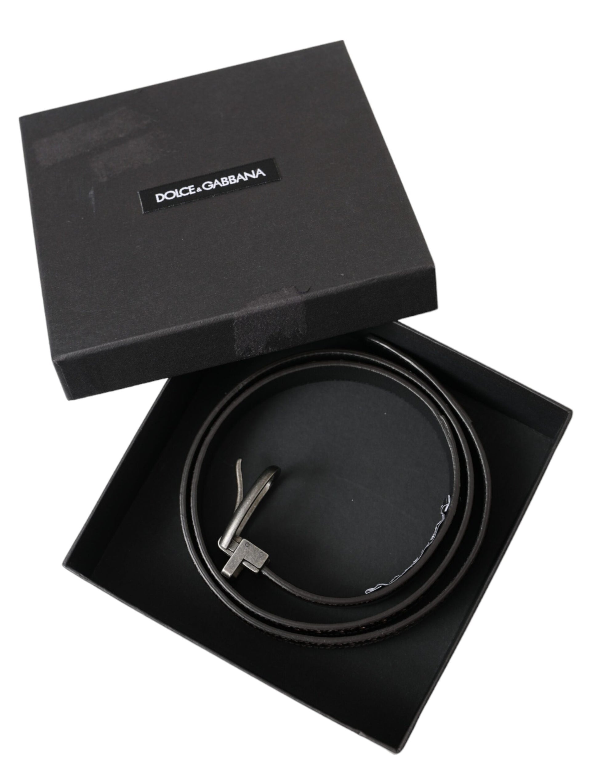 Dolce & Gabbana Dark Brown Perforated Leather Metal Buckle Belt Men