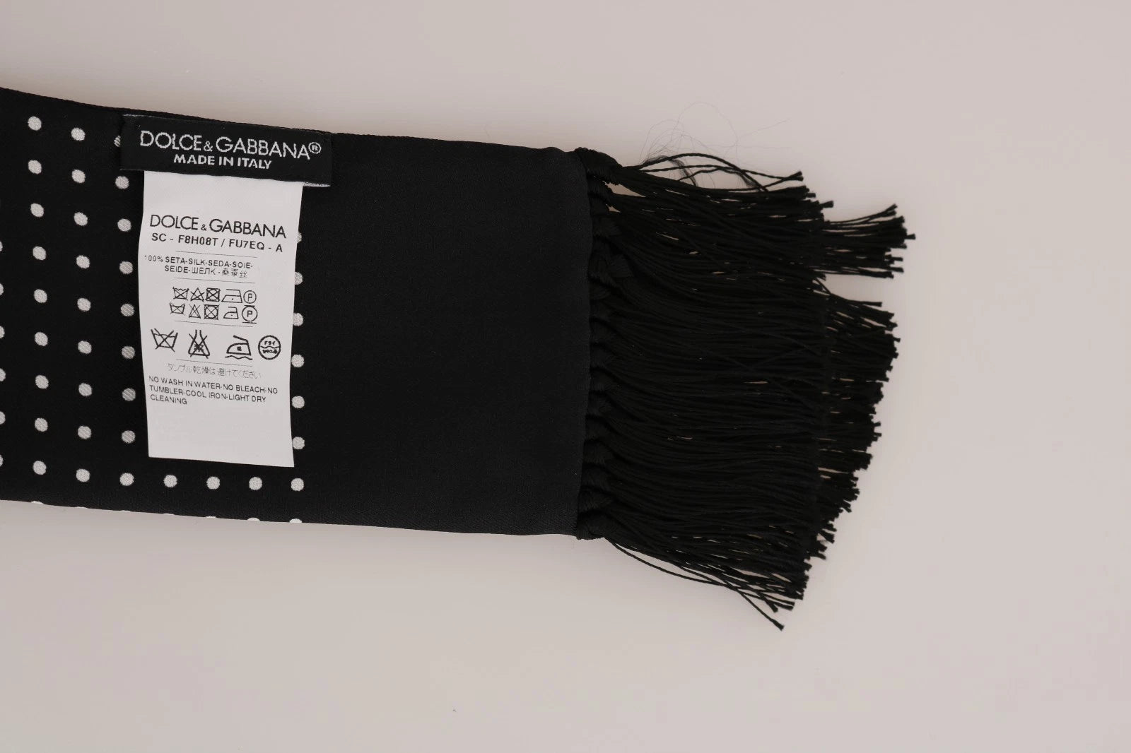 Black with white polka dots silk scarf with button attachment